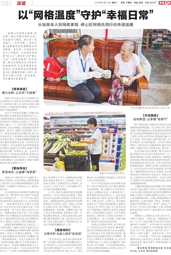 网格虽小,承载民生大事;岗位平凡,诠释不凡担当。在崂山区,“网格温度”不是一句口号,而是网格员们用责任与爱心编织的“幸福网”。许多网格员与独居老人、残疾人家庭建立了深厚感情,他们不仅是工作人员,更是老人眼中的“孩子”、居民心中的“依靠”。网格员们用一次次上门、一句句叮嘱、一件件小事,构建起温暖的防线,让独居老人不孤独,让残疾人家庭有依靠,真正实现了“网格有温度,幸福有质感”。