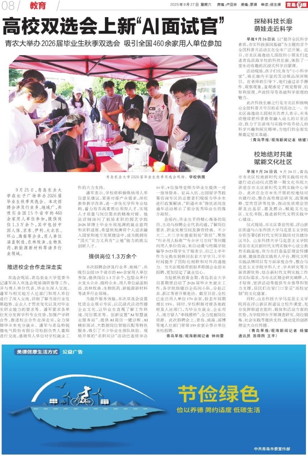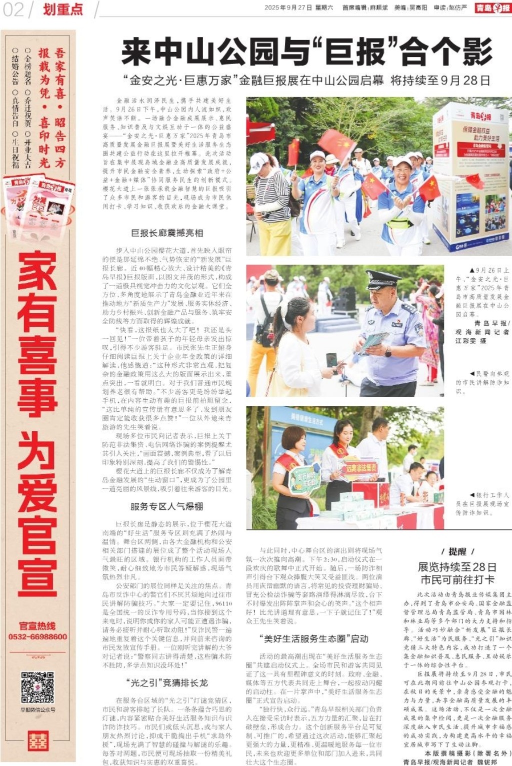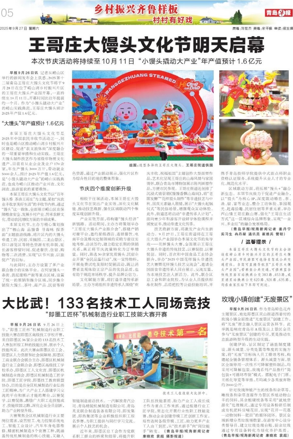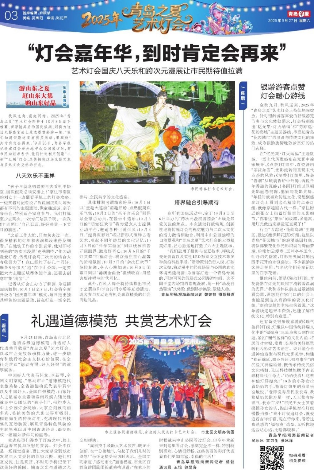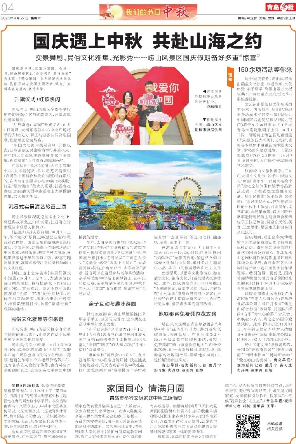 A01 头版 A02 划重点 A03 2025年青岛之夏艺术灯会 A04 我们的节日 中秋 A05 乡村振兴齐鲁样板 A06 今日看点 A07 身边事 A08 教育 A09 深读 A10 周末美食 A11 天下 A12 专题