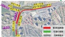 施工内容:拆除剩余黑龙江路转福州路、福州路转黑龙江路匝道桥;拆除伊春路段匝道。