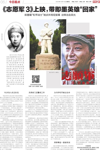 9月30日,当《志愿军:浴血和平》在全国上映,人们纷纷走进影院,了解姚庆祥等英烈的故事。这部电影让更多人看见和平背后的牺牲与坚守,不仅是对姚庆祥等英烈的缅怀,更是对“和平来之不易”的生动诠释:今日的岁月静好,从不是理所当然,而是无数像姚庆祥一样的英雄,用热血与生命换来的。
