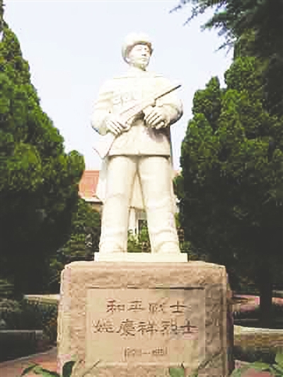 姚庆祥烈士雕像。