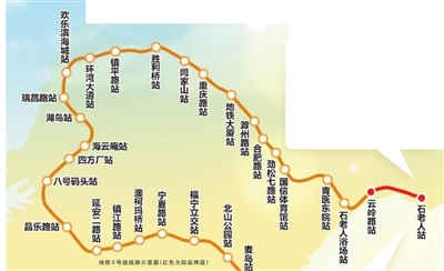 地铁5号线线路示意图(红色为拟延伸段)