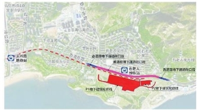 延伸段工程线路起于云岭路站(不含),终止于石老人站,沿香港东路敷设,全长约2.1公里,设1座地下车站