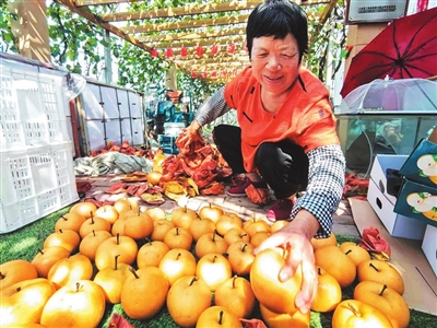 “这是‘五谷丰灵’区域公共品牌的一次集中发声,也是灵山特色农产品走向市场的重要契机。”灵山街道农业农村服务中心主任宋兆玉在展销区向游客介绍,近年来灵山街道始终坚持以品牌赋能农业发展,通过整合辖区优质农产品资源,打造“五谷丰灵”特色品牌,让这些带着“乡土气息”的优质特产走出乡村、走向更广阔的市场,为村民拓宽增收渠道,为乡村产业发展注入持久动力。展销区前,游客们纷纷驻足品鉴、咨询选购,有的拿起水果细细品尝,有的向摊主询问产品种植和加工细节,不少游客更是满载而归,将灵山的“丰收味道”带回家中。