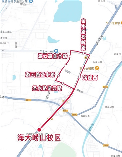 431路线自海大崂山校区站始发,途经松岭路、金水路、游云路、圣水路,环行返回海大崂山校区,全程约4公里。线路共设6个站点,其中“游云路金水路”“游云路圣水路”“圣水路游云路”均为新增站点,精准覆盖此前长期缺少公交覆盖的片区,有效打通园区职工出行的“最后一公里”,彻底解决公交盲区的痛点。