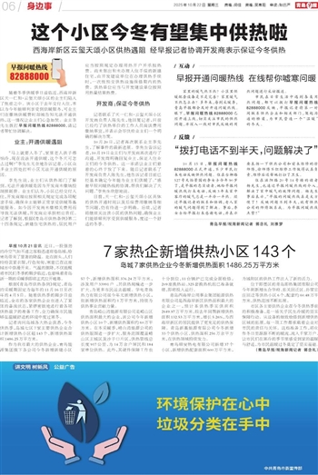 记者询问岛城各大热企获悉,今冬供热季,岛城七区7家主要供热企业合计新增供热小区超143个,新增供热面积1486.25万平方米。