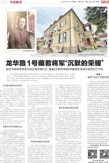近期,随着电视剧《沉默的荣耀》热播,吴石、陈宝仓等革命烈士的英勇事迹引发广大观众共鸣。人们在向英雄致敬的同时,也对他们生前的轶闻、曾经居住的地方等进行探寻。或许很多人不知道,位于青岛市市南区龙华路1号的一座老建筑,在上世纪40年代曾是陈宝仓将军的官邸。如今这里已成为游客的网红打卡地。