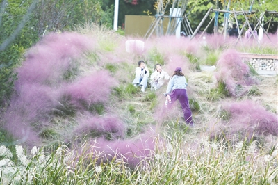 粉黛乱子草核心花期集中在9月至11月,单株花期持续40至60天,群体花期可延长60至80天。每年10月至11月,是粉黛乱子草的最佳观赏期,粉紫色花穗正从基部抽出。市民游客打卡粉黛乱子草花园,可以穿戴白色、紫色、粉色等浅色系的衣服,拍照时特别出片,一定会留下属于自己的美好瞬间。