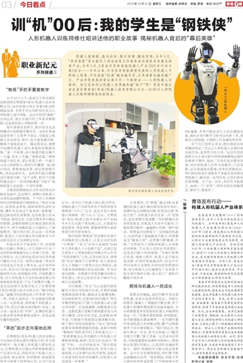 机器人扭秧歌、跑马拉松、踢足球赛、搬运货物,今年3月,“具身智能”首次被写入两会政府工作报告成为国家未来重点培育产业,今年5月,《青岛市具身智能机器人产业2025年行动方案》出台……今年以来,作为具身智能典型代表的人形机器人不断给人惊喜,不仅技能“拉满”越来越灵活,应用场景也越来越广泛。产业升级发展的背后离不开一个新职业——人形机器人训练师。他们是如何让机器人变得越来越“能干”呢?青岛早报记者走进乐聚智家(青岛)机器人技术有限公司与一位00后人形机器人训练师聊聊他的新职业。