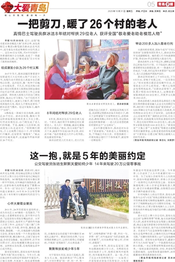 早报10月30日讯 近日,全国“敬老爱老助老模范人物”名单公布,青岛真情巴士集团6路驾驶员薛冰洁名列其中,成为青岛市获此殊荣的12位代表之一。这位80后女司机,用8年时间将一条普通的城乡公交线路,走成了一条温暖的敬老之路,让“敬老爱老”在乡村有了最具体的模样。