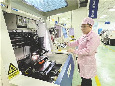 在青岛鼎新电子科技有限公司的智能制造生产线上,苏子楠专注地操作着捷登全自动飞针首件测试仪,严谨记录每一项数据。他是青岛电子学校2023届毕业生,如今已成长为生产现场质量控制岗位的骨干力量。“我特别感谢实习时青岛电子学校老师和企业导师的悉心指导。他们特别关心我们的职业规划和人生发展。鼓励我们追求卓越,把每一件小事做到极致。正是在这种引导下,我不断努力提升自己。”苏子楠表示。