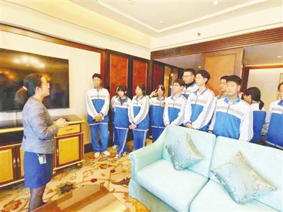 青岛旅游学校组织研学旅行、酒店数字化和广播影视节目制作三个专业的220名学生参加校企合作的“半日职场”现代学徒制试点项目,真正实现“工学交替、岗课融合”职场实践教学育人。在2024级酒店管理与数字化运营专业设立“国信冠名班”,校企共建冠名班模式将为学生提供更广阔的实践平台和就业机会,同时也为企业输送符合企业需求的高素质技术技能专业人才。“此次冠名班的成立,是企业深度参与职业教育的积极尝试,旨在实现人才培养与企业需求的无缝对接。”国信会展酒店公司副总经理巩家兴表示。