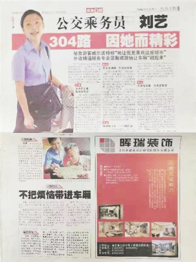 2006年11月,304路线被命名为“刘艺线路”,成为全国公交系统首条以个人名字命名的公交线路,也成为岛城沿海的一道明亮窗口,在全国公交系统声名远播。