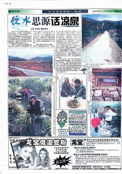 每遇旱天,村民们守着崂山水库却无水可用,要到很远的地方挑水吃。山岭上土地贫瘠,他们便自己动手修建梯田,重新种粮食、果树,默默耕耘迁村后的新生活。1999年,一个很偶然的机会,《青岛生活导报》(《青岛早报》前身)记者张建华,结识了这些一直生活在贫困线以下的村民,被他们默默奉献的精神所感动。“常言道‘饮水思源’,了解到他们的故事后,心里想着要尽自己所能看看能不能帮到些什么,作为记者,我们想让社会各界都关注到这座村子的付出和现状。”怀着这样的念头,张建华来到凉泉村,住在村支书刘承田家里,白天走访村民,晚上与刘书记促膝深谈,并用相机拍下了凉泉村的困境。1999年11月18日,《青岛早报》图文并茂地刊发了新闻报道《饮水思源话凉泉》,引发巨大反响。