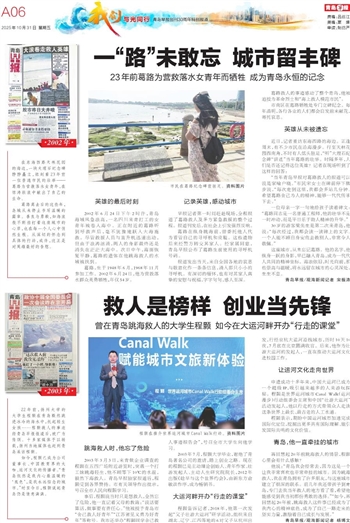 他说:“青岛我会经常去,因为这是一个让我非常喜欢也非常牵挂的城市。因为跳海救人,我在青岛拥有了许多朋友,与这座城市建立了很深的联系。前几年我还带孩子到青岛,专门去我当年救人的地方看了看,希望他能感受到我当初那份勇敢的选择。”“如今,再回想起20年前,跳海救人这件事已经成为了我内心的精神底色,成为了自己一路走来的坚实力量,激励着自己成长与发展。”