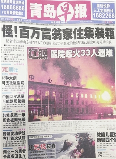 2005年12月,早报独家报道了“捐88万助学 自己住集装箱”的“怪人”王明殿。报道刊发后,立即在岛城引发热议,有人佩服,有人不相信,有人不解,许多市民赶到王明殿住地探访。最终,在社会掀起一股慈善爱心热潮。