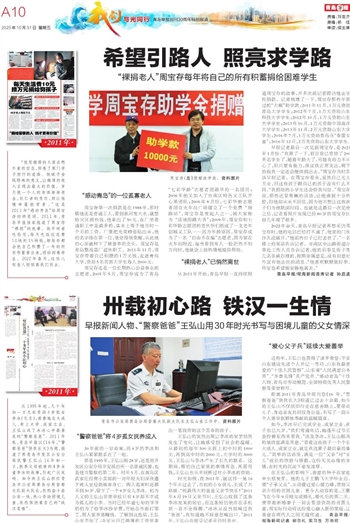 从2011年开始,青岛早报一直持续报道周宝存的故事,并多次派记者跟访他去学校捐款。记者梳理了一下,周宝存那些年捐过的“大额”助学款:2011年11月,1万元资助青岛大学学生;2012年7月,1万元资助山东科技大学学生;2012年10月,1万元资助山东大学学生;2013年10月,1万元资助中国海洋大学学生;2013年11月,2万元资助山东大学学生;2016年7月,1万元资助青岛市“春蕾女童”;2016年12月,2万元资助山东大学学生。