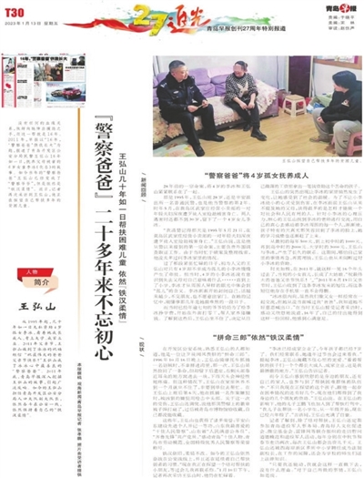 距离2011年青岛早报刊登《16 年,“警察爸爸”供我长大》报道已过去十余载,如今的王弘山不仅依旧行走在慈善路上,更带动儿子、身边亲友共同投身公益,书写了一段从个人善举到群体奉献的温暖篇章。