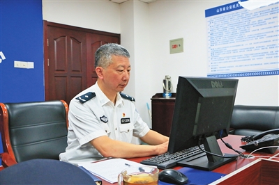 青岛市公安局黄岛分局督察大队副大队长王弘山在工作中。资料图片