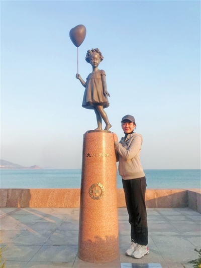 妈妈在“九月天使”雕像前。