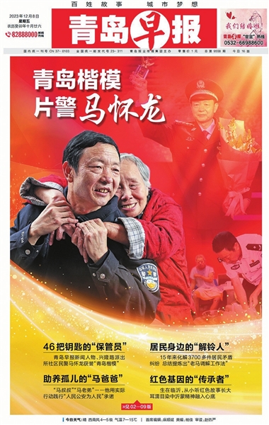 2023年12月8日,马怀龙荣获“青岛楷模”,青岛早报以九连版对马怀龙进行了重磅报道,在公安系统引起强烈反响,受到社会各界广泛关注。此后,早报多次对马怀龙进行回访,如今,他已经成为青岛早报读者耳熟能详的新闻人物了。