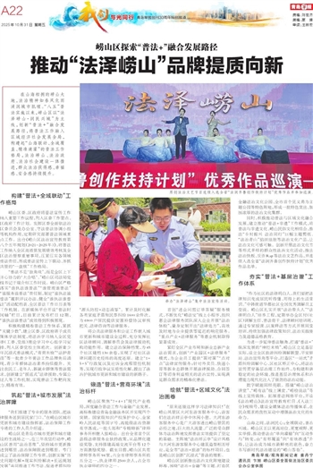 同时,积极推动普法与区域文化融合发展,建立推动“普法+非遗”工作模式,将普法与非遗文化、崂山民俗文化相结合,推出“乡村振兴 法治同行”巨幅主题剪纸、“法治青山”掐丝珐琅等法治文化产品,让法治文化可感可触。创新开展法治文化节等形式多样的群众性法治文化活动,推出法治快板、反诈Rap等法治文艺作品,并连续入选全省“法润齐鲁创作扶持计划”优秀作品名单。
