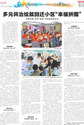 从低矮民房到明亮新居,从“村民”到“居民”的身份转变,从零散管理到协同共治的模式升级,崂山区中韩街道的回迁小区在基层治理的生动实践中,书写着“安居”向“乐居”的蝶变故事。中韩街道以党建为引领,串联执法、综治、物业议事会等多方力量,织密治理网络,更以文化“两创”为笔,为回迁小区注入鲜活动能,走出了一条回迁小区从“住得进”到“住得好”的善治之路。