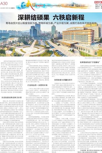 在青岛早报迎来创刊30周年的重要时刻,青岛自贸片区也于今年8月31日度过国务院批复设立六周年纪念日。作为青岛对外开放的“桥头堡”与制度创新的“先行者”,两者多年来携手见证城市发展。值此双庆之际,青岛自贸片区借早报特刊,回顾六年改革创新成果,展望更高水平开放新征程,向城市与市民交出一份亮眼答卷。