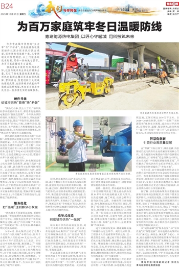 从“硬件保障”到“服务创优”,从“管网改造”到“智慧创新”,青岛能源热电集团始终以“保民生、保安全、保发展”为初心。未来,青岛能源热电集团将继续秉持“绿色低碳、科技驱动、多能协同”发展理念,深耕供热智能化技术研发与应用,不断完善户端能耗智能管理系统,推动其在更多区域推广应用。同时,集团也将继续与青岛早报携手,见证城市发展,守护市民温暖,在建设现代化国际大都市的征程中,书写更多民生答卷。
