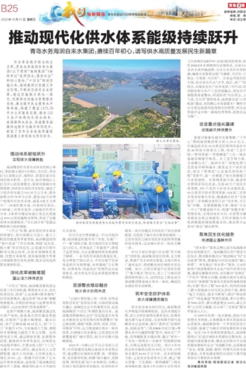 作为青岛城市供水的主力军,青岛水务海润自来水集团(以下简称“海润集团”)始终牢记“优质供水,服务社会”的初心使命。“十四五”规划实施以来,海润集团以党建工作为引领,不断深化国有企业改革,通过实施城乡供水一体化、完善供水设施与智慧服务系统、着力提升民生服务水平等举措,构建了覆盖1075.78平方公里服务范围、服务152万余户的现代化供水体系。在保障供水安全、传递服务温暖的过程中与城市共同进步,彰显了百年企业在高质量发展道路上的传承与责任担当。