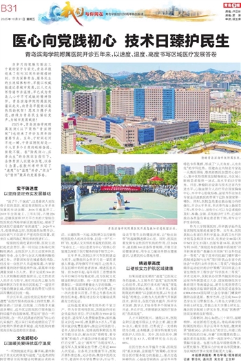 五载砺剑,初心如磐;三十同行,温暖相伴。站在新的历史起点,青岛滨海学院附属医院将以开诊五周年为契机,继续秉承“除疾润心、济泽众生”的宗旨,向着三级甲等医院的目标,向着“百姓健康的靠山、就医者首选医院、世界一流医学中心”的愿景踔厉奋进。也愿与青岛早报继续携手,以更优服务、更强实力护佑青岛市民健康,为区域医疗事业发展贡献更大力量。