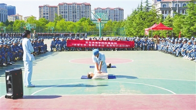 青岛滨海学院附属医院开展急救知识进校园活动。