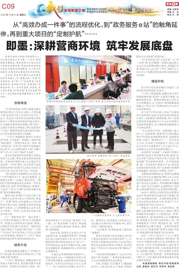 2025年,即墨出台的《青岛市即墨区2025年营商环境优化提升若干措施》,推出了26条精准举措。这是即墨连续第五年出台的综合性优化文件,彰显了“久久为功抓环境”的决心和定力。