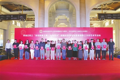 从6月份到国庆节前夕,即墨区总工会组织开展了全区职工“发现即墨之美·向海而兴”迎国庆系列活动暨首届职工艺术节,活动涵盖“墨韵山海 丹青颂华”全区职工书法、绘画、篆刻作品大赛,收到职工参赛作品190余幅;“墨韵山海 丹青颂华”即墨区书画艺术家作品征集活动,征集作品111幅;“瞬间即墨 华章映像”全区职工摄影作品大赛,参赛职工107人,作品550余幅。9月29日上午,即墨区总工会在青岛海泉湾皇冠假日度假酒店举办全区职工“发现即墨之美·向海而兴”迎国庆系列活动暨首届职工文化艺术节颁奖仪式,为即墨区职工文艺工作者之家揭牌,开启为期半个月的获奖作品和即墨书画家主题艺术作品展。