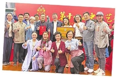 《烟火人间》演员在第十四届中国艺术节闭幕式演出后合影。市话剧院供图
