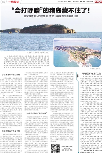 网友们的关注如同打开了一个“流量入口”,让猪岛这颗“沧海遗珠”得以走进人们的视野。但青岛的“海上秘境”远不止于此。在青岛882.92公里长的蜿蜒海岸线上,散落着120座大小不一的岛屿,它们如同散落在蓝色丝绒上的明珠,每一颗都闪耀着独特的光芒。在这片海域上甚至形成了独特的“海岛动物园”——除了猪岛,还有马岛、驴岛、牛岛、兔岛、鸭岛等一系列以动物命名的小岛,每一座都藏着专属的自然密码与故事。