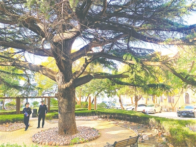 工作人员先后来到青岛市口腔医院、市南区安徽路幼儿园和老城风景区进行古树情况调查。青岛市口腔医院内的一棵雪松,已经有100多年树龄。“这棵古树保护得很到位,长势很好,这与它生长空间大有很大关系。”市综合行政执法支队园林与环境执法大队副大队长蓝润辉介绍。在市南区安徽路幼儿园,孩子们虽然还不能真正了解保护古树的意义,但是隔壁一棵百岁银杏树,孩子们都说“漂亮”。园长隋吉敏告诉记者,孩子们经常在大树下玩耍、做手工,心目中早已把大树当成了“好朋友”。