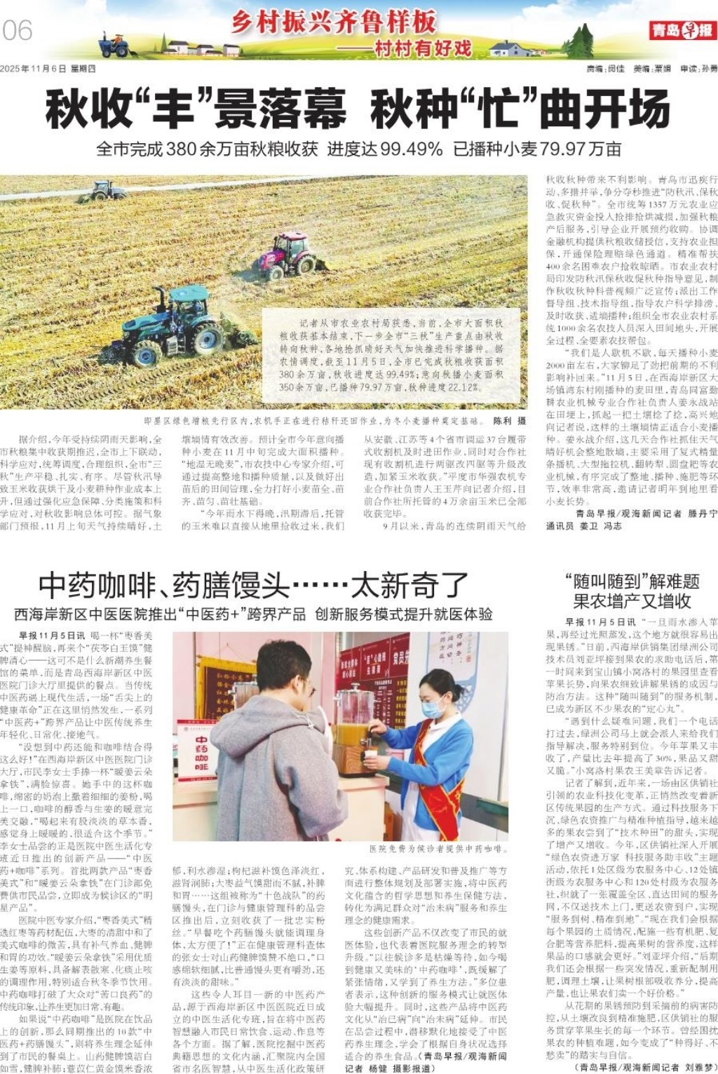 A01 头版 A02 划重点 A03 今日看点 A04 一线探访 A05 从车间走来 A06 乡村振兴齐鲁样板 A07 都市圈 A08 大爱青岛 A09 体育 A10 星光岛周刊 A11 星光岛·文艺评论 A12 天下