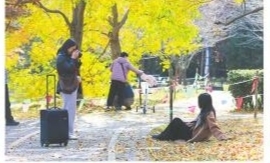 在小孙不远处,独立摄影师老徐则采用着一种更为传统却也更具互动性的揽客方式。当一位身着亮色毛衣的女游客从他身边经过时,他迅速按下快门,然后微笑着上前,向对方展示平板电脑上刚拍下的照片。画面中,人物与金色的背景相得益彰,表情生动自然。女游客看到照片后,脸上瞬间绽放出惊喜的笑容:“你拍得太好了,这照片我要了!”老徐告诉记者,在居庸关路这短短几百米的“赛场”上,像他这样的职业或半职业摄影师至少有几十名。他们赖以生存的资本,是对构图和光影的深刻理解,以及手中远比手机强大的专业摄影器材。“大家各凭本事吃饭,”老徐说,“但共同的一点是,我们都想通过镜头,把青岛最美的秋天留在每一位游客的记忆里。”