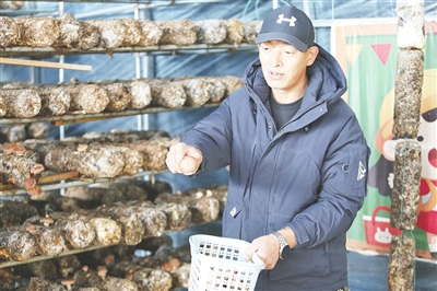在千弘公司的生产车间里,这些来自北宅街道的樱桃树枝碎料,经过进一步精细加工和科学配比,被装袋、灭菌、接种,最终制成一个个菌棒。在恒温恒湿的菇房里,平菇、香菇等食用菌从这些以果树枝为“床”的菌棒上探出头来,长势喜人。工人们穿梭其中采摘,一会就收获了不少平菇和香菇。
