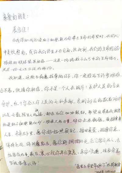 走出献血屋时,贺仁芹心里默默期许:“既然留下了血样,就早已做好随时捐献的准备,只要能帮到患者,无论什么时候需要,我都义不容辞。”这一等便是八年,贺仁芹始终记得当初的承诺,静静等待着为生命续航的时刻。