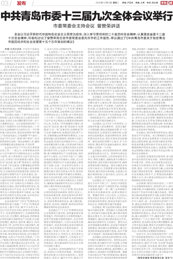 早报12月8日讯 中国共产党青岛市第十三届委员会第九次全体会议公报(2025年12月8日中国共产党青岛市第十三届委员会第九次全体会议通过)