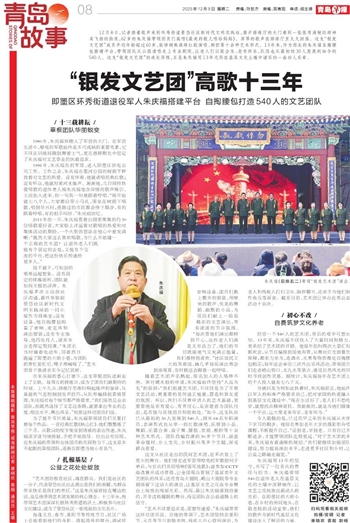这支从社区走出的民间艺术团,还多次登上了更大的舞台。他们曾走进军营用嘹亮的军歌慰问子弟兵,与官兵们共同唱响《强军战歌》;曾参加CCTV海选赛并成功晋级,让全国观众看到了基层老年文艺团队的风采;还在青岛大剧院、崂山大剧院等专业剧场留下过动人的演出,让基层文艺之花在专业舞台上绽放出绚丽光彩。然而,最让朱庆福感到自豪的,并非这些耀眼的舞台,而是团队在公益道路上的坚守。