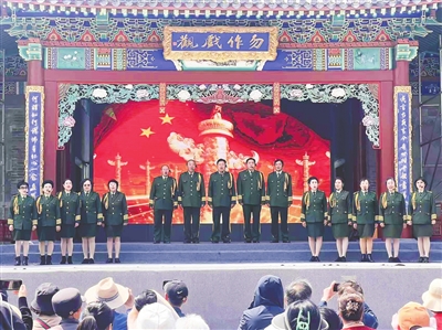朱庆福(后排右二)带领“银发艺术团”演出。