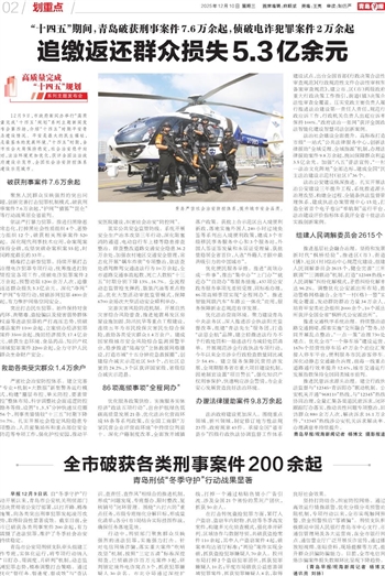 早报12月9日讯 自“冬季守护”行动开展以来,青岛市公安机关刑侦部门坚决贯彻省公安厅部署,以打开路、精准施策,向各类突出刑事犯罪发起凌厉攻势,取得阶段性显著成效。截至目前,全市已破获各类刑事案件200余起,有力震慑了违法犯罪,维护了冬季社会治安持续稳定。