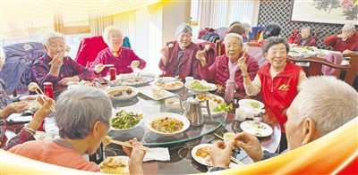 社区的老人们围坐在一起吃饺子。青岛早报/观海新闻记者 刘文超 摄