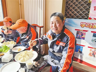为了这场一年一度的盛宴,谭洪声夫妇提前数日便开始筹备。“今天到场的大约120个人,我们包了4000个饺子,200来份,都是提前准备好的。”老板娘谭凤华说。从选材、调馅到包制,每一个环节都凝聚着夫妇俩的心意。除了主角饺子,餐桌上还摆满了大虾、肘子、鱼和各色凉菜,荤素搭配,营养均衡。上午11:30,随着工作人员一声“吃饺子啦!”,热气腾腾的饺子被端上桌,老人们和环卫工人们围坐在一起,边吃边聊,欢声笑语不断,温馨融洽的氛围驱散了冬日的寒冷。