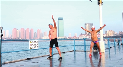 他的打卡时间一年四季雷打不动:每天早晨六点半出门,九十点钟回家。在栈桥附近的海域,他与一位固定的游泳“搭子”相伴下水,这种默契已持续了六七年:不用特意约定,每天同样的时间老地方见,风雨无阻,已经成为他们之间一种心照不宣的默契。
