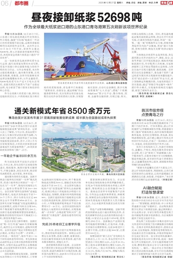 早报12月26日讯 12月26日,青岛市举行“2025年青岛自贸片区高效能制度创新成果”新闻发布会。记者从会上了解到,今年以来,青岛自贸片区深入实施自贸试验区提升战略,与各部门通力协作,探索形成了31项高效能制度创新成果,其中,1项上升为国家制度规范,5项获国家部委创新备案或作为典型案例推广,25项获省政府及省级部门推广、认可。