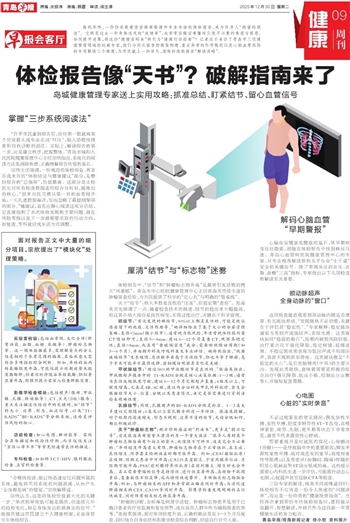 每到年终,一份份承载着密密麻麻数据和专业术语的体检报告,成为许多人“甜蜜的烦恼”。它既是过去一年身体状况的“成绩单”,也常常因晦涩难懂而引发不必要的焦虑与困惑。如何拨开迷雾,将这份“健康密码本”转化为“健康行动指南”?记者近日采访了青岛市三位健康管理领域的权威专家,他们分别从报告的框架构建、重点异常的科学甄别以及心脑血管风险的专项解读三个维度,为市民献上一份详尽、清晰的体检报告“解读攻略”。